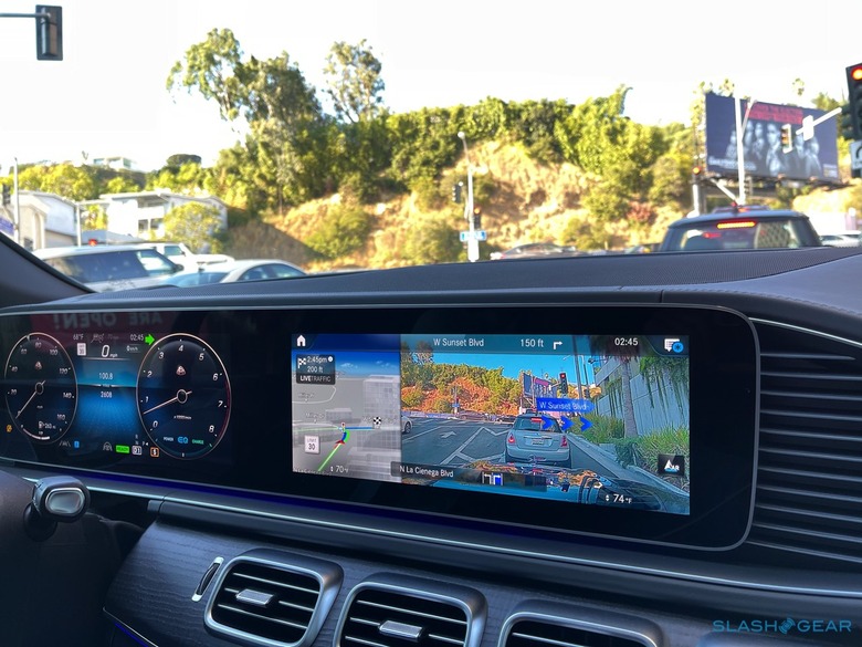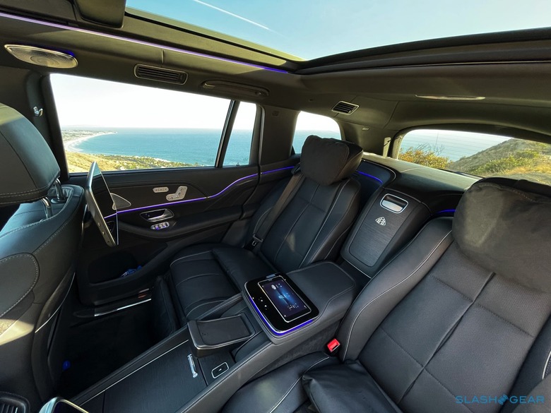 Those in the back get an MBUX-powered rear-seat entertainment system, with a pair of 11.6-inch touchscreen displays. If even reaching forward is too much effort, an MBUX rear tablet – docked neatly in the rear center console – can be popped out and used to alter all the vehicle settings.