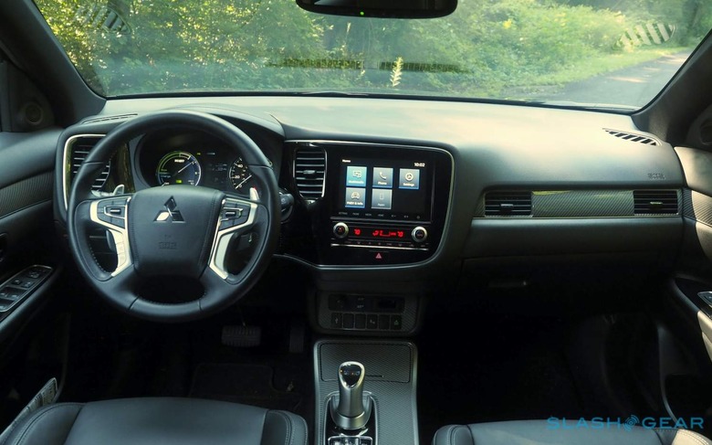 Generally, the gas engine acts as a range extender, independent from the wheels themselves. Hit the accelerator and you purr away on electric power, at least to begin with; get too demanding and the gas kicks in, with an unlovely grinding sound. Push really hard, meanwhile, and the Outlander PHEV's gas engine can in fact directly drive the wheels, with any excess power shunted to the battery.