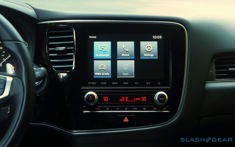 That features drab graphics and bad grammar dialog messages, and it's not the only head-scratcher. Something about the Mitsubishi Outlander PHEV is like going through Alice's looking-glass into a parallel universe: the Outlander PHEV has the features you expect, but it delivers them in odd ways. The power tailgate, for example, is actually a regular one but with a powered arm that effectively pulls it down for you, as though it was easier for Mitsubishi to just bolt in a (slow) robot.