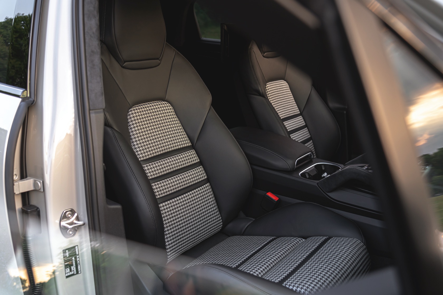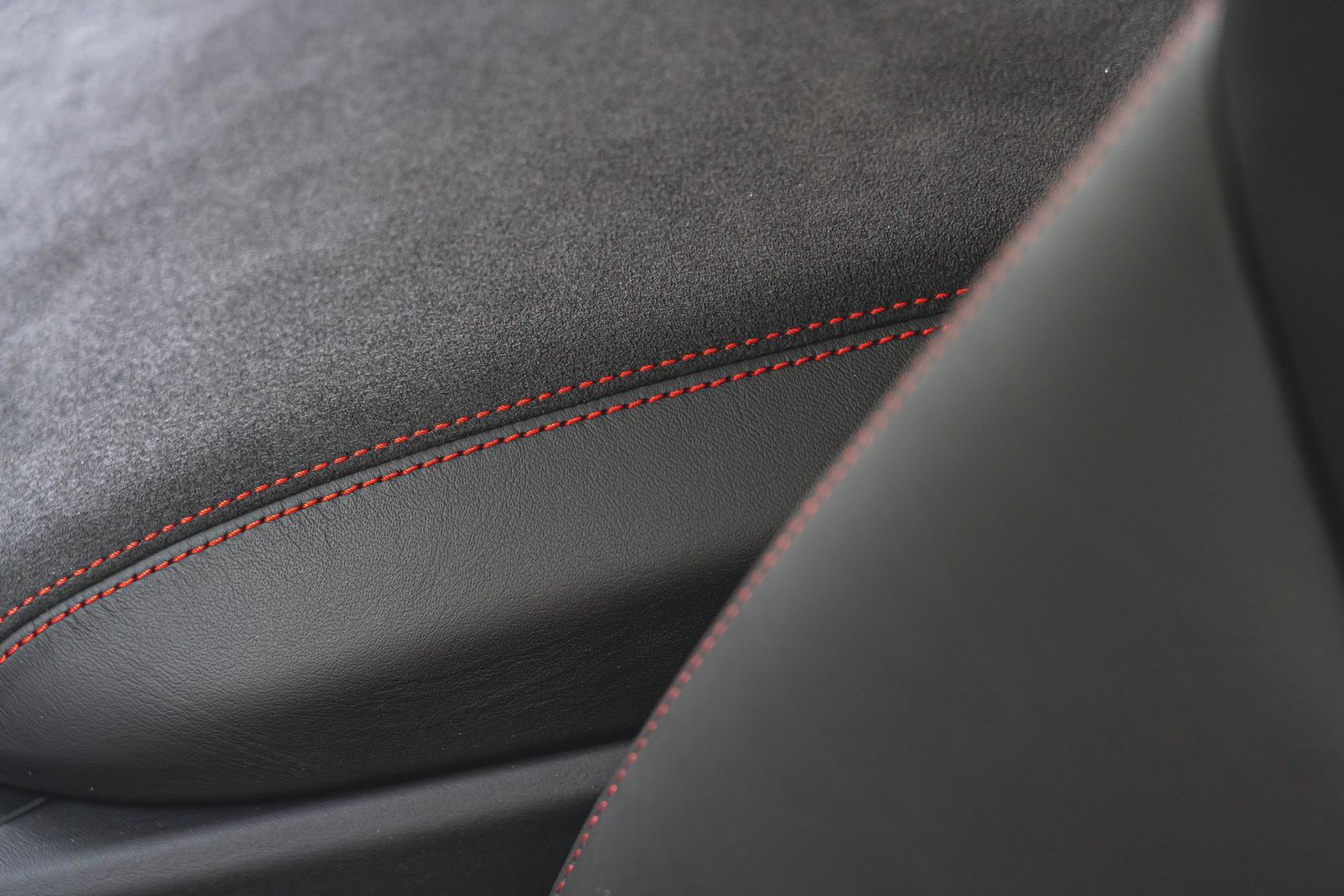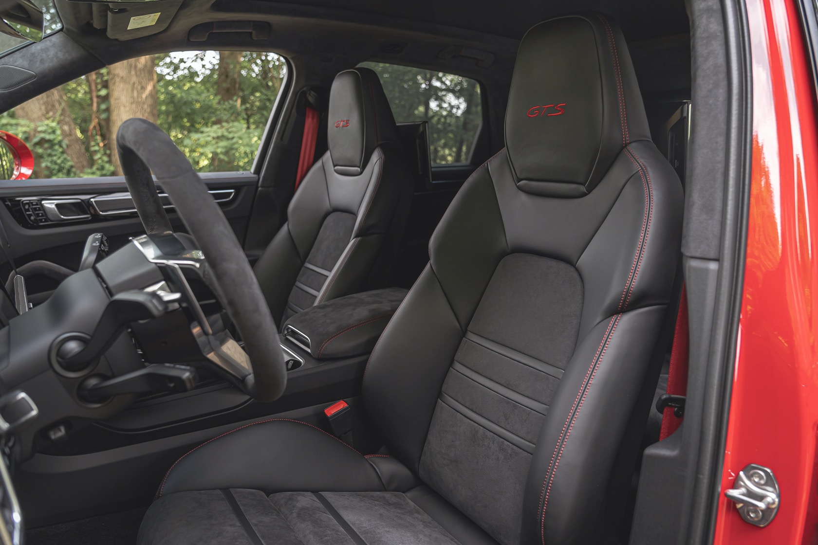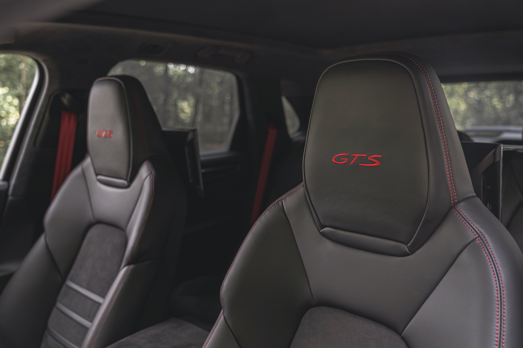 Inside, there are sports seats and plenty of Alcantara. GTS logos aren't in short supply either: on the seats, the doors, and the sills, for a start. Dark brushed aluminum trim rounds things out.