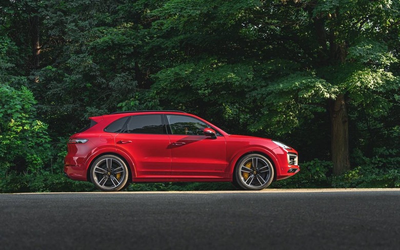 Obviously that's down from the Cayenne Turbo's 541 hp and 567 lb-ft, but a compromise there does come with some benefits. Less power meant Porsche could use a smaller version of the 8-speed Tiptronic S. It could also opt for lighter engine components; as a result, this new twin-turbo V8 is only around 40 pounds heavier than the old V6.