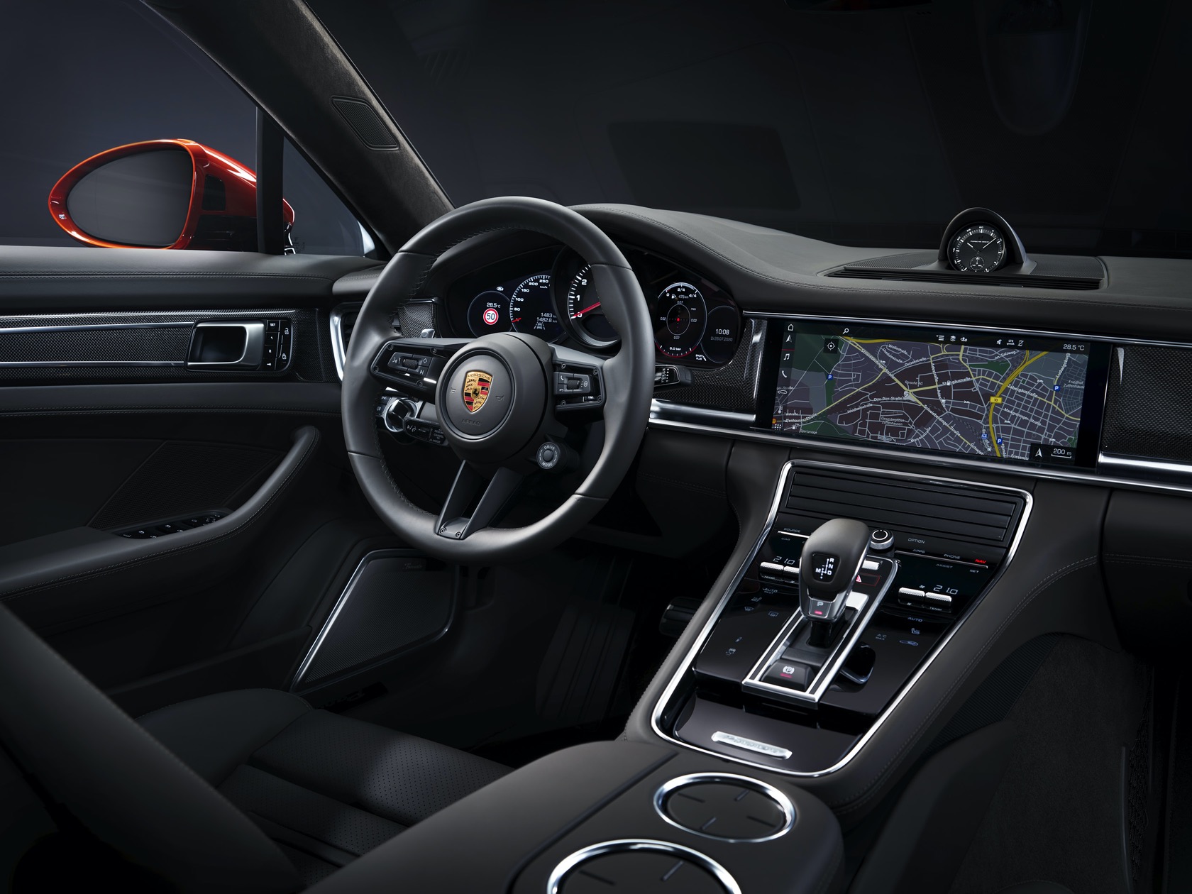 The 2021 Panamera GTS gets 473 hp and 457 lb-ft of torque, along with special GTS styling and tuning. If you want a plug-in hybrid, meanwhile, Porsche has increased the battery capacity of its E-Hybrid range, in addition to adding a new model. The 2021 Panamera 4S E-Hybrid pairs a 2.9-liter twin-turbo V6 gas engine with an electric motor for 552 hp and 553 lb-ft of torque. 0-60 mph arrives in 3.5 seconds, and the top speed is 185 mph.