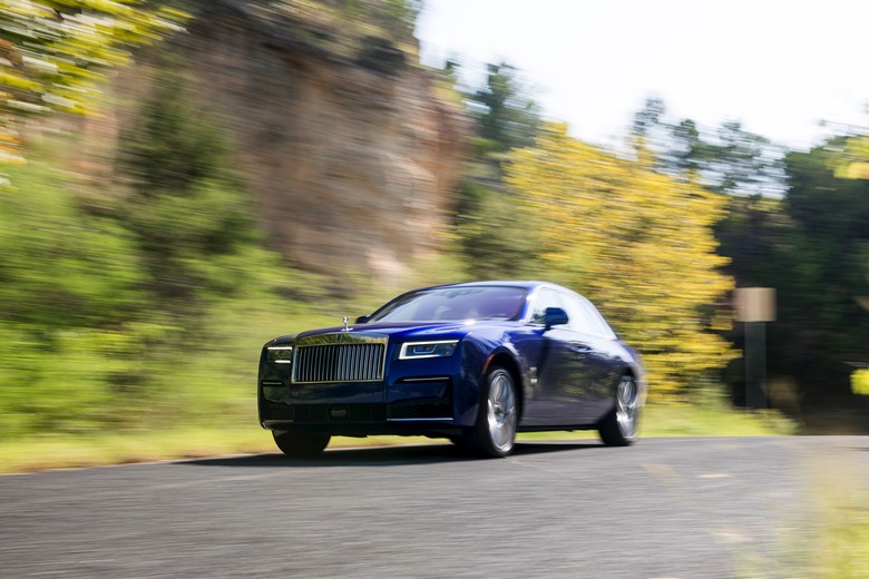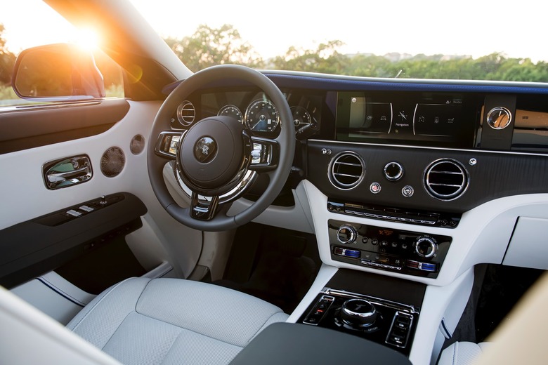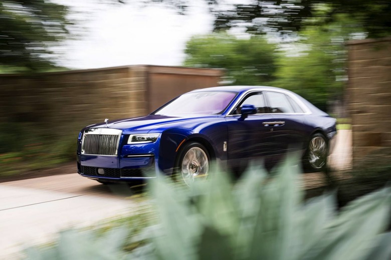 Looking ahead, of course, is recommended if you're doing as Rolls-Royce expects and driving the 2021 Ghost yourself. Under the stretched hood is a retuned 6.75-liter twin-turbocharged V12 engine, offering 563 horsepower and 627 lb-ft of torque to all four wheels via an 8-speed automatic gearbox. For a long time, the automaker refused to talk about anything as base as specific power figures, but even in this age of transparency the powertrain's focus is still on convincing you there's a never-ending wave of torque to come.