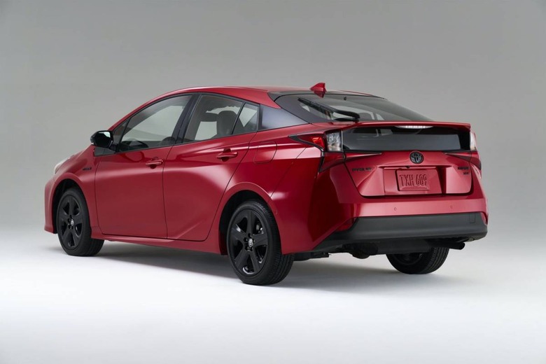Toyota starts out with the Prius XLE FWD, and finishes the car in either Supersonic Red or Wind Chill Pearl. That includes a color-keyed rear spoiler, together with various black exterior trim and detailing.