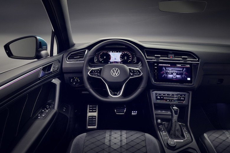 The Tiguan SE R-Line Black has 19-inch alloys, R-line bumpers, black roof rails, and a sportier R-Line sport steering wheel borrowed from the Atlas R-Line. Lastly, the top tier 2021 Tiguan SEL R-Line features 20-inch wheels, a larger 10-inch digital cockpit, interior ambient lighting, and advanced safety features including predictive adaptive cruise control and a dynamic road sign display system. It gets leather seats, too, including a new "Noisette" color option.