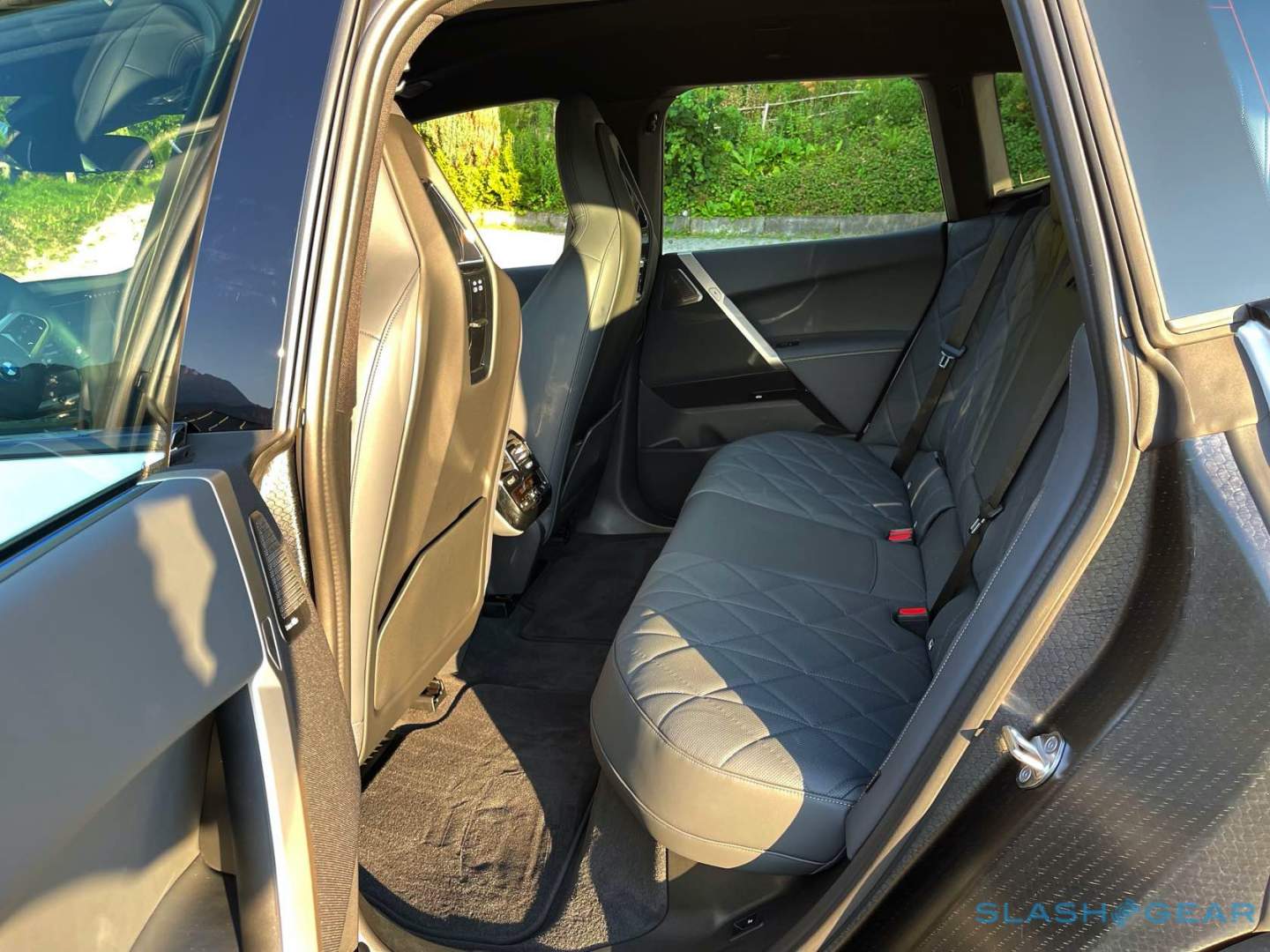 The interior is as roomy as it is luxurious. Quirky touches include the aforementioned hexagonal steering wheel, a first in a production BMW. The automaker claims the unique shape improves ease of access and seating comfort, but really it has more to do with offering a better view of the curved display behind the wheel.