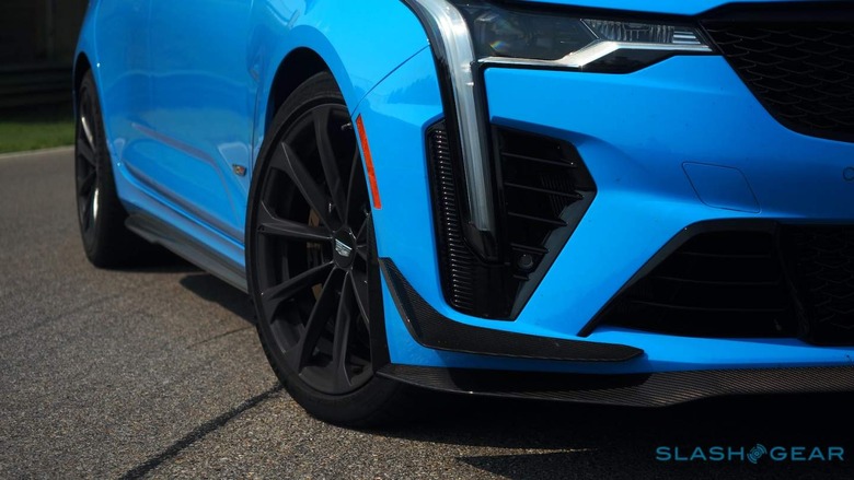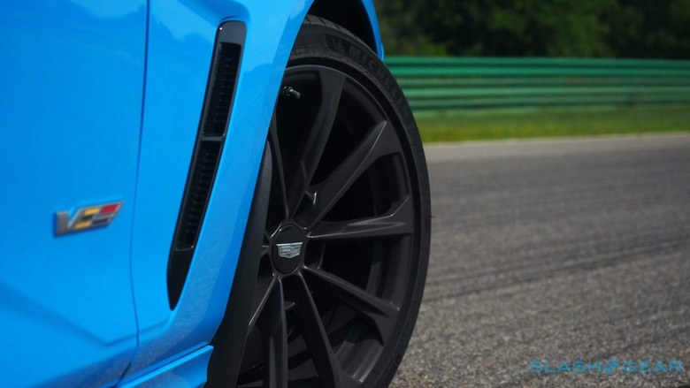 Would 19-inch wheels fit in the arches? Sure, but these customized 18-inch versions are the largest that allow for sufficient sidewall for compliance, enough clearances in the wells for aggressive track maneuverers, plus contribute to weight reduction and, frankly, the affordability of new rubber. Cadillac definitely expects CT4-V Blackwing owners to take their cars to the track, and running costs are a legitimate consideration. You could put on bigger wheels yourself, engineering chief Brandon Vivian acknowledges, but "you're making a compromise that we won't make on the cars that we offer."
