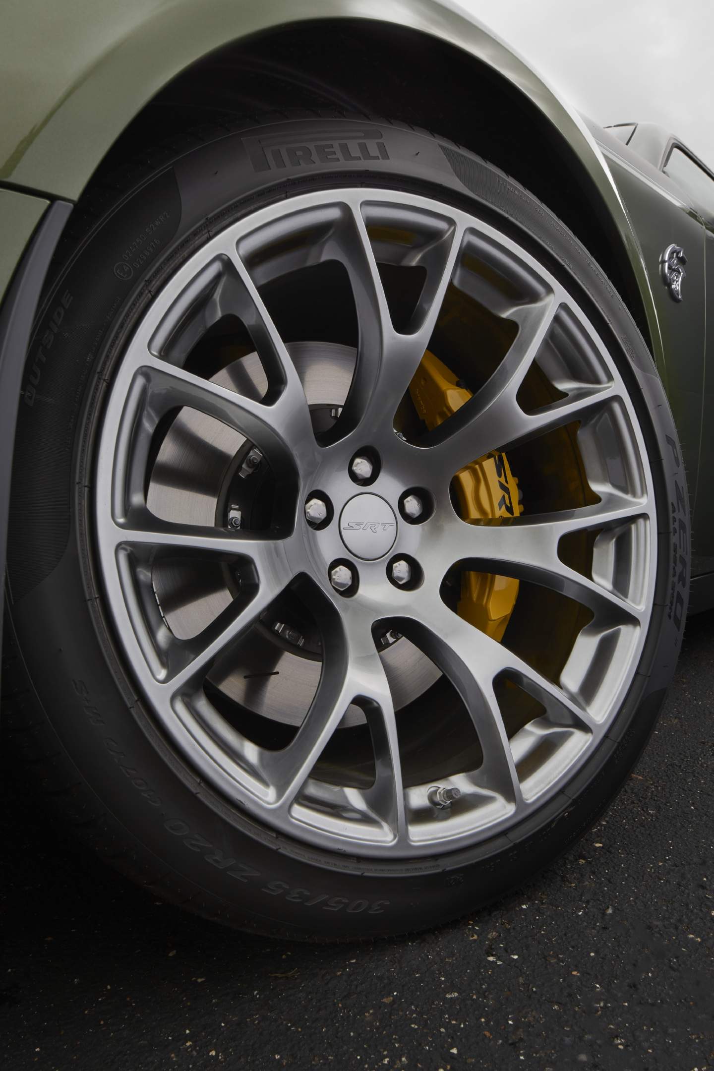 If you can't make up your mind, you can go for the Old School or Brass Funky design theme created by the Dodge Product Design Office. For instance, the Old School Challenger Jailbreak features F8 Green paint with a satin chrome Hellcat grille, gray calipers, a chrome fuel door, and Hammerhead Grey interior accents.