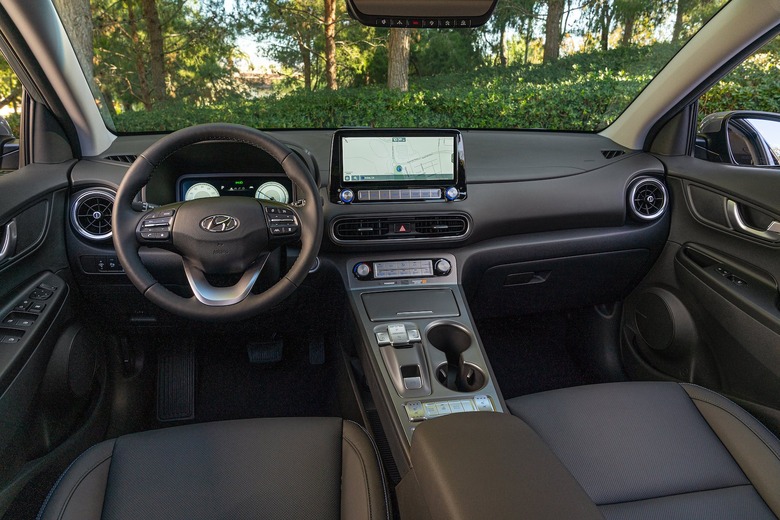 As for the all-electric version of the crossover, the 2022 Kona Electric doesn't make any big drivetrain changes. That means you still get front-wheel drive, with a 150 kW (201 hp) electric motor good for 291 lb-ft of torque. It's powered by a liquid-cooled 64 kWh li-ion battery, which is estimated to delivery 258 miles of EPA range, or 132 MPGe city, 108 highway, and 120 combined.