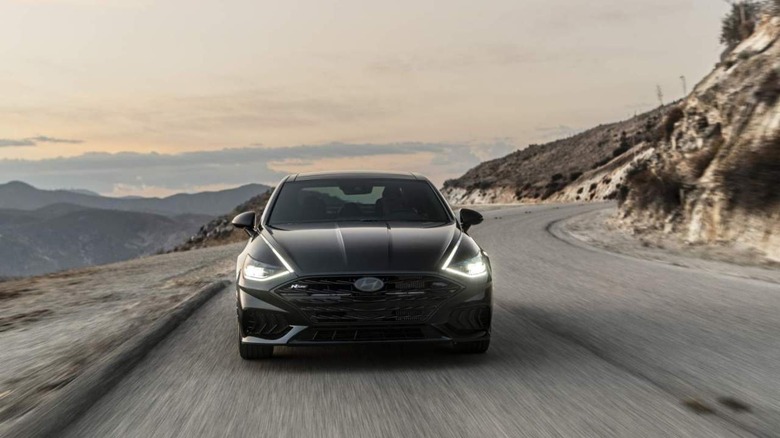 It still has a 2.5-liter turbocharged inline four-banger pumping out 290 horsepower and 311 pound-feet of torque. You can't get AWD, but it does have Hyundai's slick-shifting eight-speed wet dual-clutch gearbox turning the front wheels. The N Line has 110 more horsepower and 116 more torques than the 1.6-liter turbo engine in a standard Sonata, and it even gets a sportier exhaust note to match its propensity for speed.