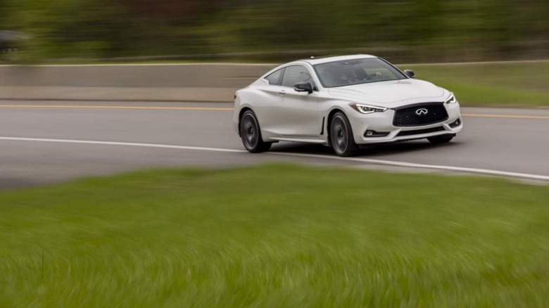 Meanwhile, the Q60 Luxe starts at $50,300. It gets more yummy features like a Bose Performance Series audio system, a surround-view monitor with moving object detection, intelligent cruise control, heated front seats, a heated steering wheel, semi-aniline leather upholstery, and more. There's an equipment package for the Q60 Luxe that adds navigation, advanced climate control, 19-inch wheels, and a carbon-fiber rear spoiler, among other things.
