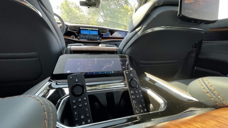 The rear entertainment displays have built-in Fire TV support, streaming via the Grand Wagoneer's 4G LTE WiFi hotspot. Each screen can have its own, separate streams – and comes with a familiar Fire TV remote – with Amazon committing to support the SUV with its app for an unspecified "number of years," Jeep tells me. At least there's a good old-fashioned HDMI input for each display too, or you can use wireless projection from your smartphone.