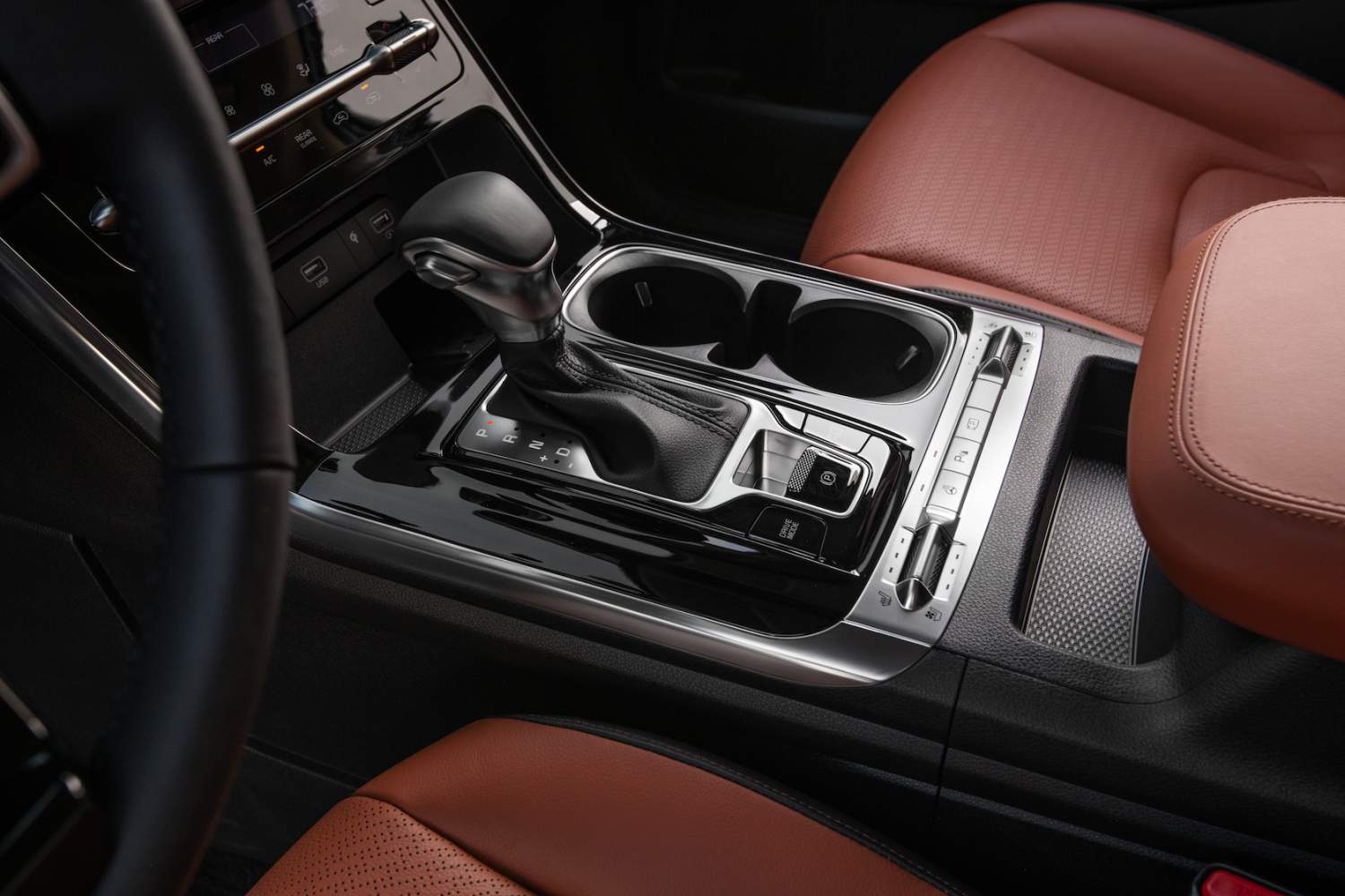 For the driver, there's an 8-inch touchscreen with wireless Apple CarPlay and Android Auto, wireless phone charging, and multi-Bluetooth support. A 3-inch navigation display and 3-inch digital cluster are also standard. Up to nine USB ports – spread across the three rows – and two 110V outlets can be had, and EX and above trims get a roof-mounted button to trigger the infotainment voice control. SX and SX-Prestige models get dual rear screen entertainment monitors, with wireless screen mirroring for Apple and Android devices.