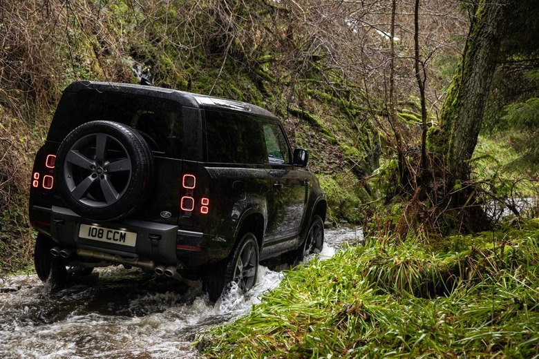 All four variants get the same 5.0-liter supercharged V8. It's packing 518 horsepower and 461 lb-ft of torque, and Land Rover says to expect 0-60 mph in 4.9 seconds from the Defender 90 V8, and a top speed of 149 mph. Air suspension and an electronic active rear differential are standard, as is a new Dynamic drive mode in the SUV's Terrain Response system. That prioritizes performance on asphalt and loose surfaces like gravel.