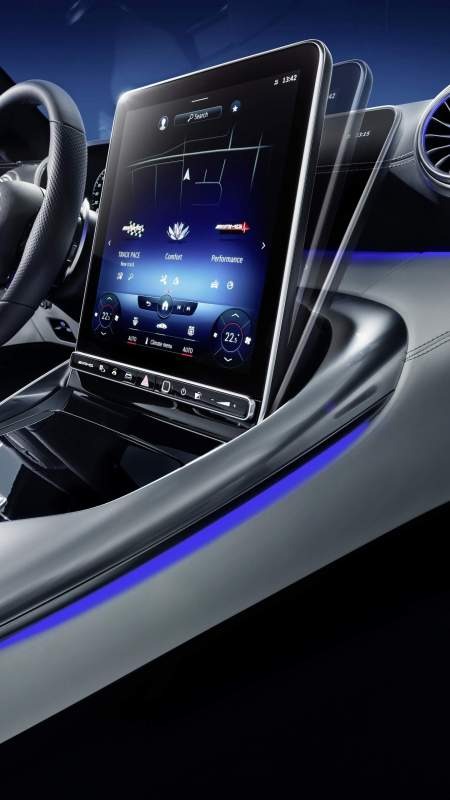 Also, it's hard to miss that 11.9-inch infotainment touchscreen first seen in the new C-Class. We were expecting similar to the brand's Hyperscreen setup from the all-electric EQS. Still, the all-new SL's portrait-oriented touchscreen display has an ace up its sleeve: the angle is electronically adjustable to reduce glare while driving with the top down. Clever thinking, this.