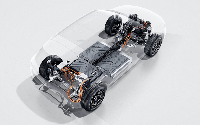 Mercedes says you'll see a full charge in under 6 hours on a Level 2 charger, while 100 kW DC fast charging support means a 10- to 80-percent charge takes around 30 minutes. 0-62 mph comes in 8.9 seconds, and there's a top speed of 99 mph.