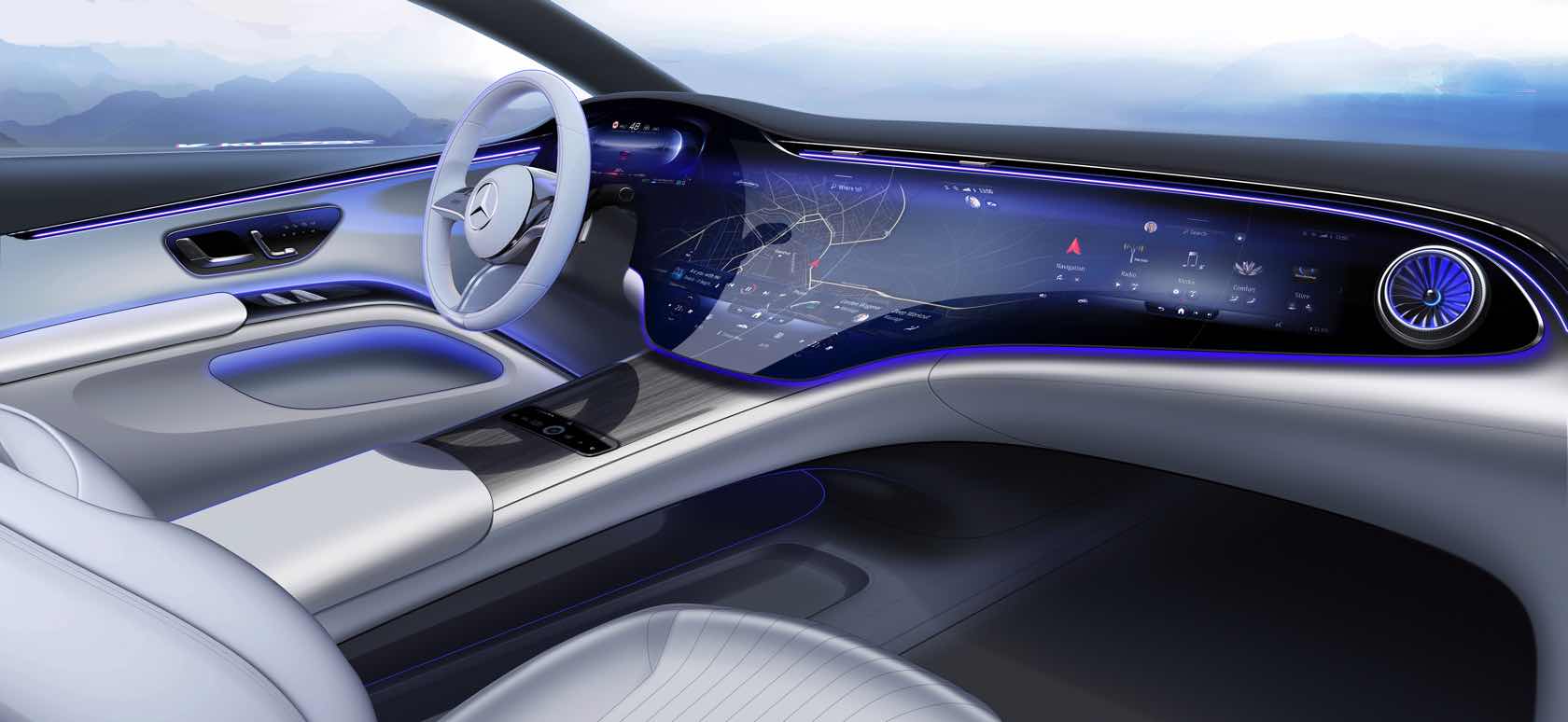 Depending on the configuration, the 2022 EQS has up to 350 sensors to monitor almost everything under the sun, both inside and outside of the car. That includes distance, vehicle speed, lighting conditions, precipitation and temperature, seat occupancy, and even the driver's eye movements.