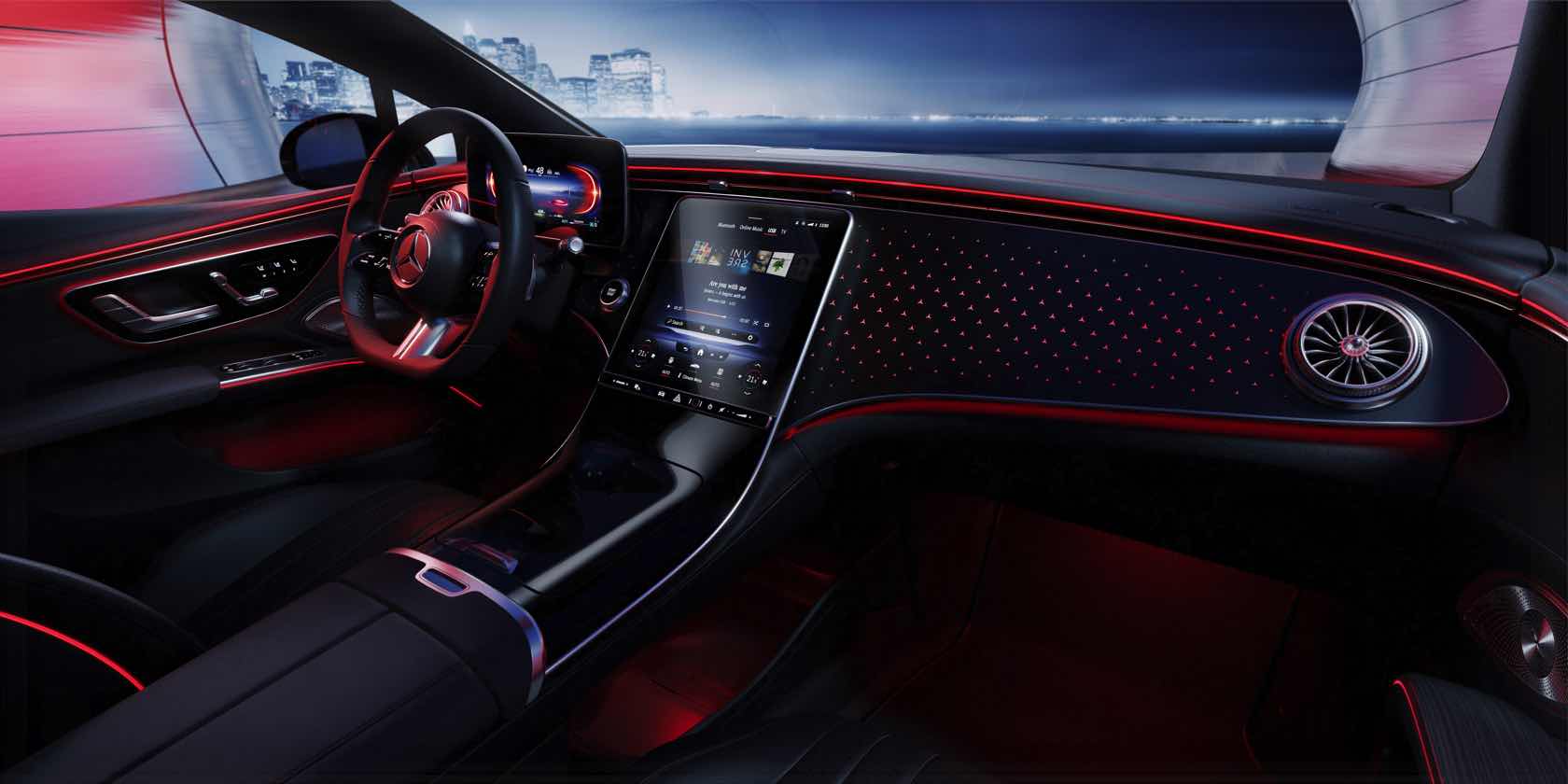 Drawing bandwidth from eight CPU cores and 24GB of RAM, the Hyperscreen's advanced A.I.-based operating system and zero-layer menu functions give powerful gaming laptops a run for the money. Additionally, the central and passenger display screens offer haptic feedback, while the flowing leather surfaces and avant-garde cabin materials will make you feel like royalty. The Burmester 710-watt 15-speaker audio system could well inspire you to sing like a rock star (or TikTok pop star, if you prefer).