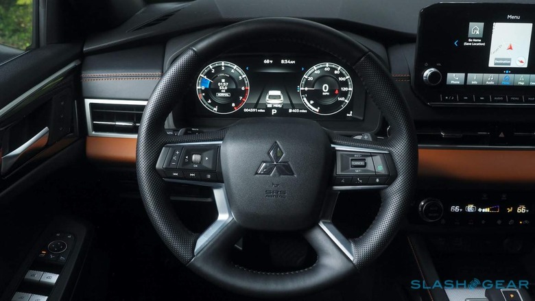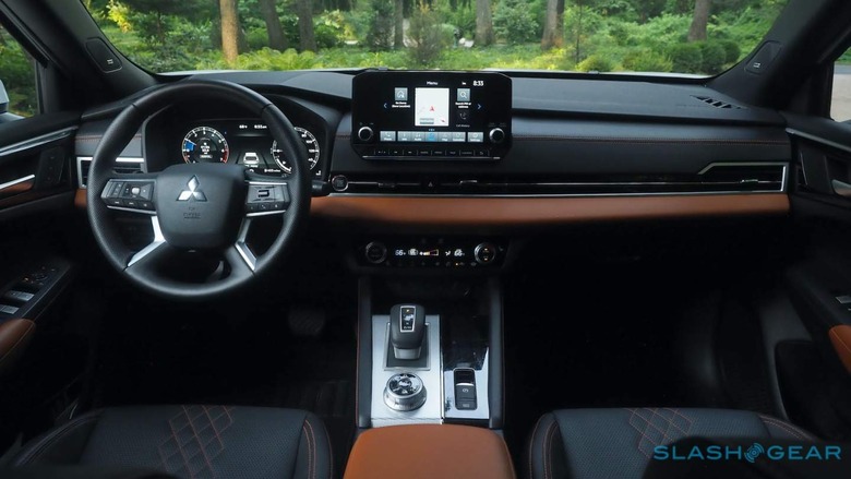 What stands out, though, is how cohesive and well assembled things feel now. Where you got the sense in the old Outlander that different chunks of the cabin and dashboard were designed by independent teams, who only came together at the very end to share their homework, this 2022 model is positively pleasant. Nicely padded, soft-touch surfaces alongside tasteful trim; sure, things like the drive mode knob are still plastic, but it's nice-feeling plastic nonetheless.