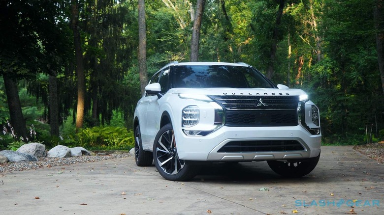 Mitsubishi's aesthetic remains a fairly unusual one, and the 2022 Outlander doesn't blend into the crowd of compact SUVs. The oversized grille with its split front headlamps and chrome X-flourish is bold and distinctive, while the hints of Land Rover are all the more obvious in the metal. I'm not sure the overall result is necessarily handsome, but it's certainly memorable.