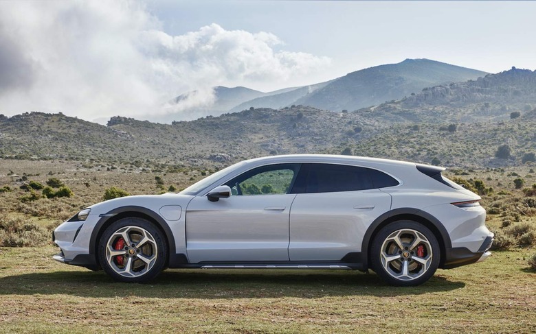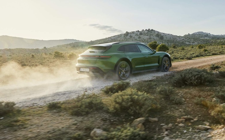 Meanwhile, the Cross Turismo gets special fender extensions, unique rocker panels, and a new front and rear fascia. It's also 0.78-inches higher in ride height than the Taycan sedan, while Porsche Adaptive Suspension Management with air suspension will be standard across all four trims, able to lift the EV for even more clearance. An Off Road Design Package will toughen up the exterior with extra cladding, and add another 0.39-inches of lift, while the Taycan Turbo S Cross Turismo gets rear-axle steering as standard.