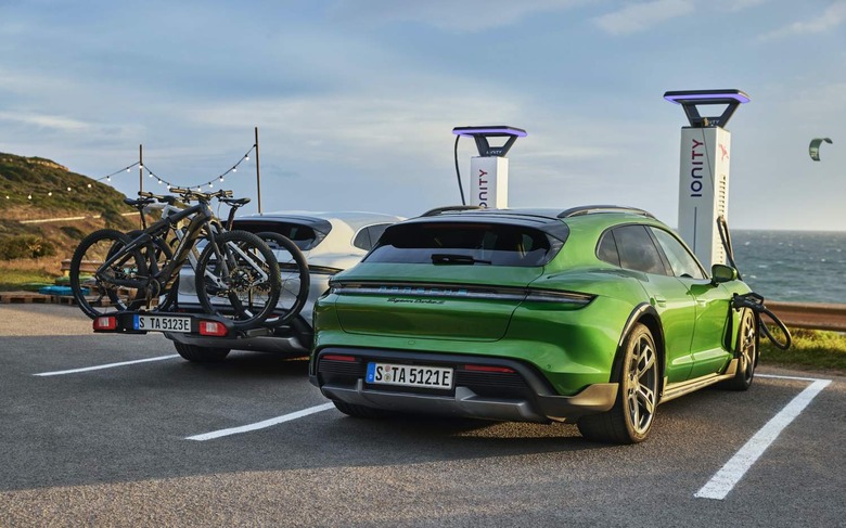 The rear seats fold down, for up to 42.8 cu-ft in all four models, and they get the same 2.9 cu-ft front trunk. Roof rails are standard-fit, and Porsche will offer both a roof transport system box and a rear bike rack.