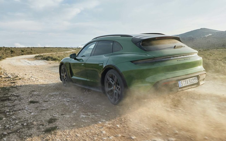 Meanwhile, the Cross Turismo gets special fender extensions, unique rocker panels, and a new front and rear fascia. It's also 0.78-inches higher in ride height than the Taycan sedan, while Porsche Adaptive Suspension Management with air suspension will be standard across all four trims, able to lift the EV for even more clearance. An Off Road Design Package will toughen up the exterior with extra cladding, and add another 0.39-inches of lift, while the Taycan Turbo S Cross Turismo gets rear-axle steering as standard.