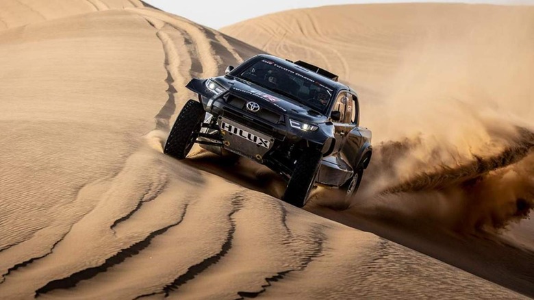Toyota Gazoo Racing is fielding an all-new Hilux in the 2022 Dakar rally. Surprisingly, it has inherited the all-new, tenth-generation Toyota Land Cruiser's 3.5-liter twin-turbocharged V6 engine along with a few more custom mods. Toyota's latest Dakar rally machine is debuting at the Saudi Arabian desert starting on January 2, 2022.