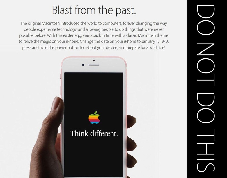 Two iPhone hoaxes and one built-in security measure have popped up over the past week that you need to be aware of. For the most part, these warnings stick for whatever iPhone you happen to have: iPhone 6s, iPhone 6s Plus, iPhone 6, iPhone 6 Plus, iPhone 5 and iPhone 5s – so don't take your chances. The first has to do with re-setting your clock to a date before Apple existed. Do not do this. Your iPhone will turn into a brick.