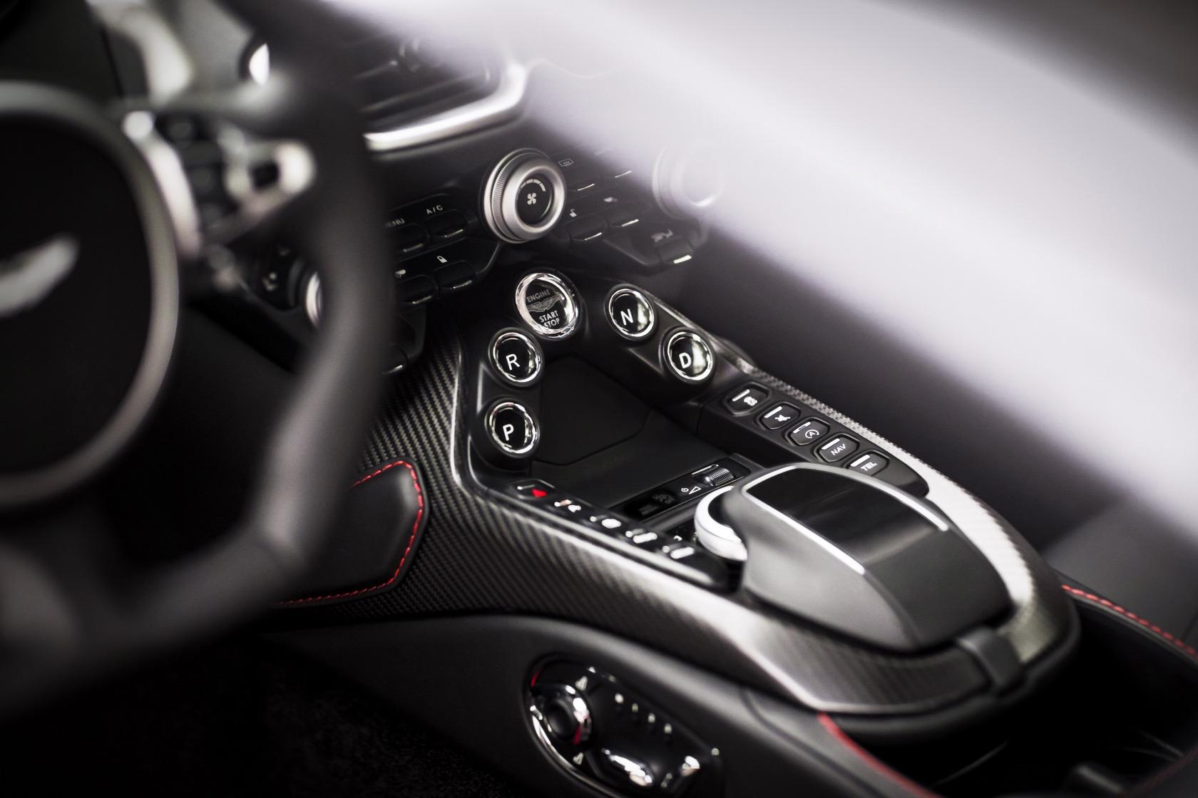 At the rear, for example, the sharp upsweep on the deck lid is designed with aerodynamics in mind. Aston Martin says it contributes "a significant" amount of downforce, and is a first for a core production model from the company.