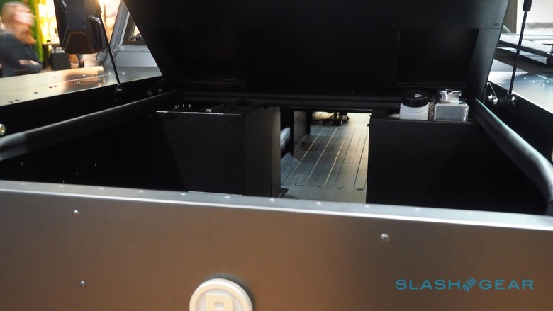 As standard, Bollinger offers a standard 3-box truck body. Two doors, a hatchback at the rear, and a covered second-row and cargo space. However, since the tech is underneath, there's more flexibility to how the top can be configured.