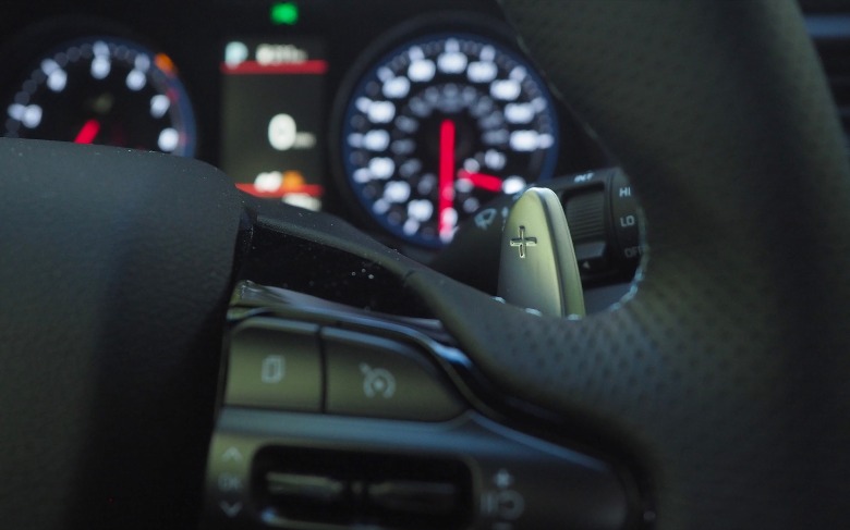 Then, Hyundai mixed things up. The stick was staying, don't worry about that, but there'd be an optional 8-speed, N-branded wet dual-clutch transmission. An automatic, yes, but a sporty automatic, one with paddle-shifters for those times you want to take over, but the ability to leave it to switch cogs itself when the route is more mundane.