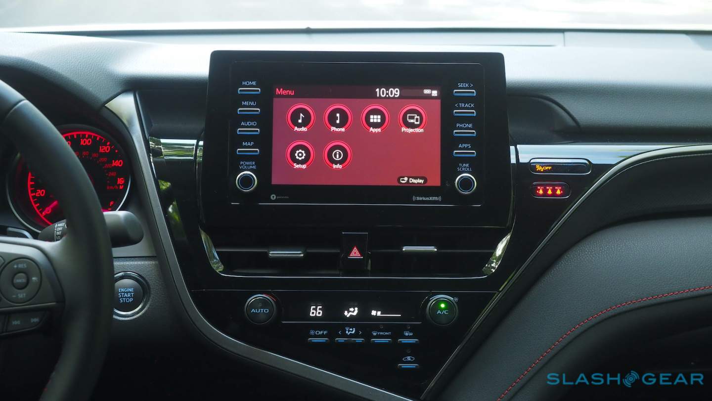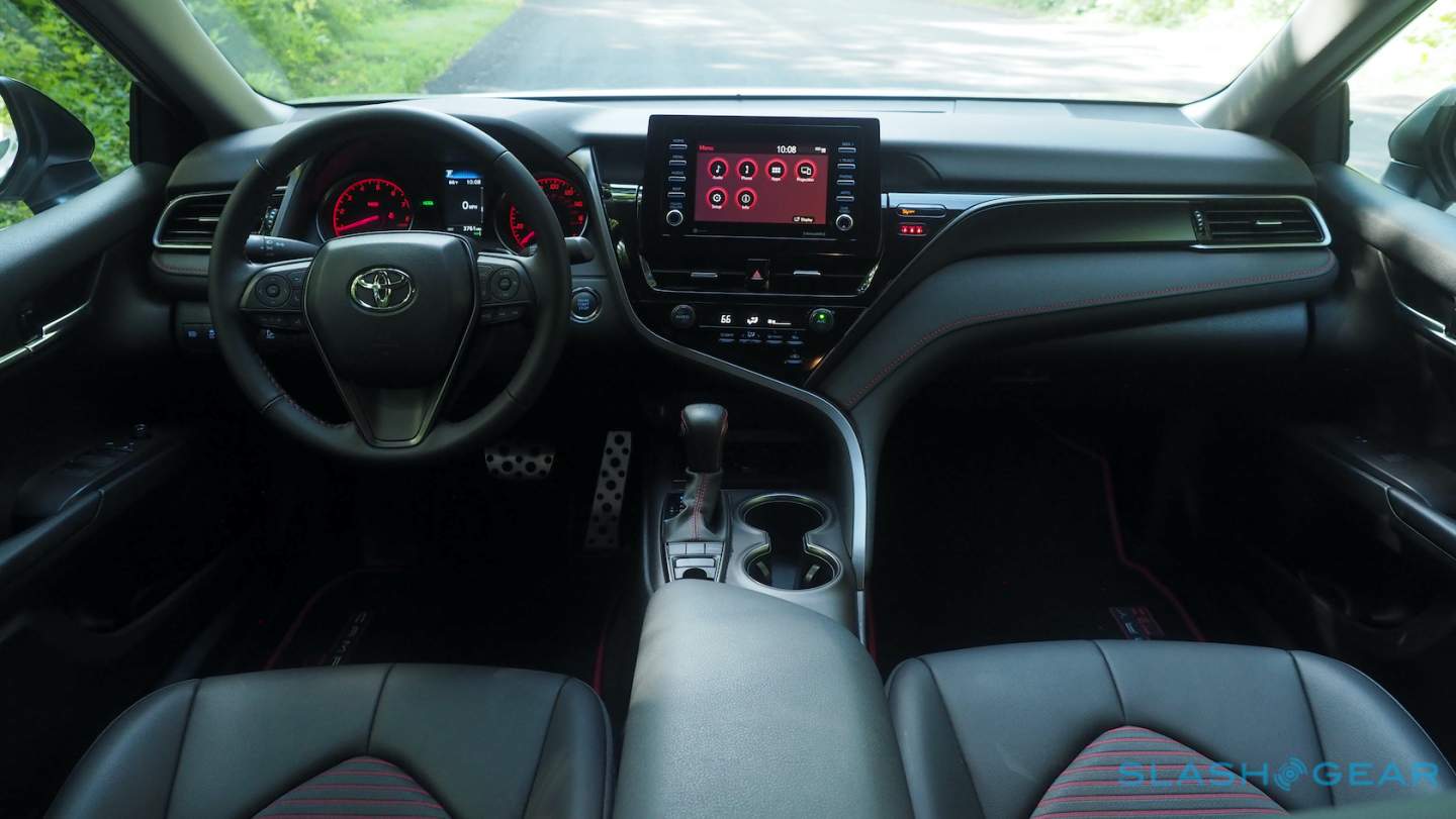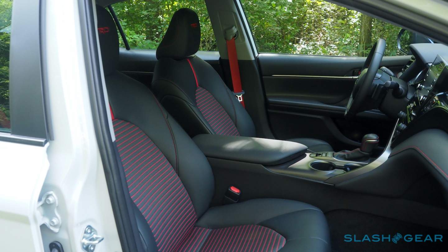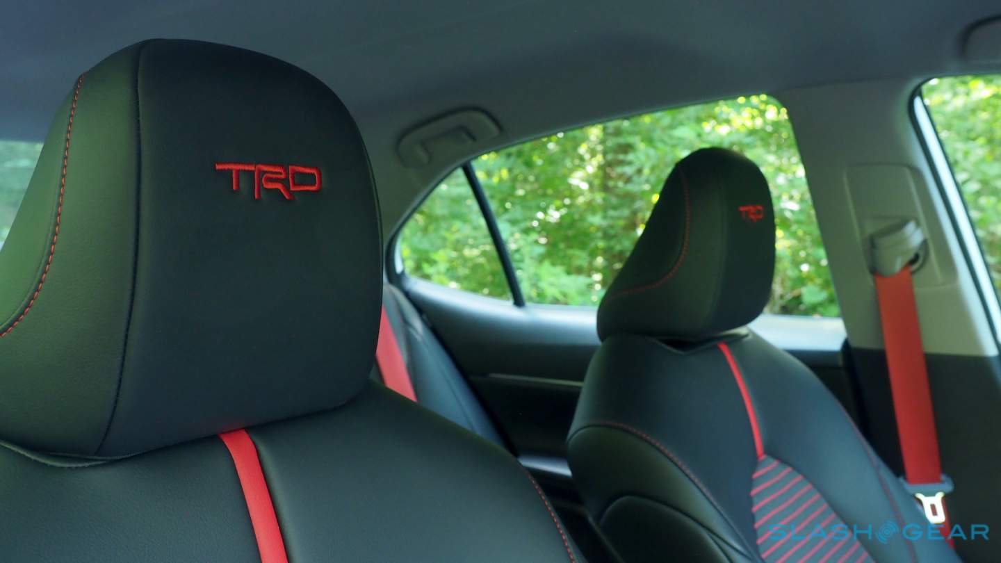 That still undercuts a Camry XLE V6, which starts at a couple of grand more, but you do sacrifice some creature comforts along the way. Spend the extra and you get dual-zone automatic climate control rather than single-zone, a 7-inch cluster display rather than the TRD's 4.2-inch; leather seats with front heating; a folding rear bench rather than fixed; a 10-inch head-up display; an auto-dimming rearview mirror; wireless phone charging; and a 9-inch touchscreen infotainment system rather than 7-inch.