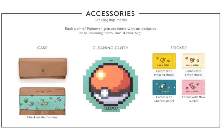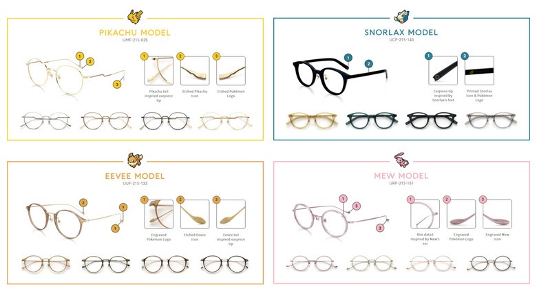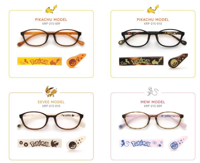 The folks at Jins make prescription glasses frames that you can order online. In the mix they've got four categories: Flagship Model, Johto Region Model, Kanto Region Model, and Kids Model. Each of these categories have 2 or 4 models therein, with prices between $100 and $140 USD.