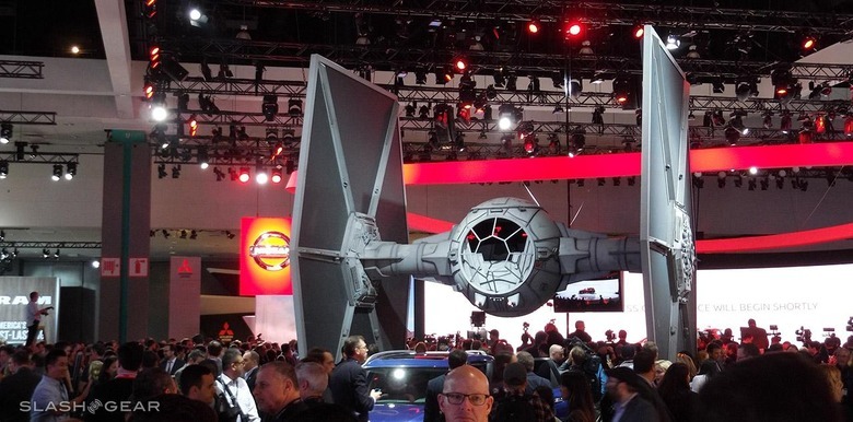 Of the five entries on our list, the Nissan Rogue One Edition is by far the least extravagant to behold. The TIE fighter image below show how Nissan brought big-time props along to the auto show to make sure it was clear that they had a more traditional vehicle with Star Wars branding, too.