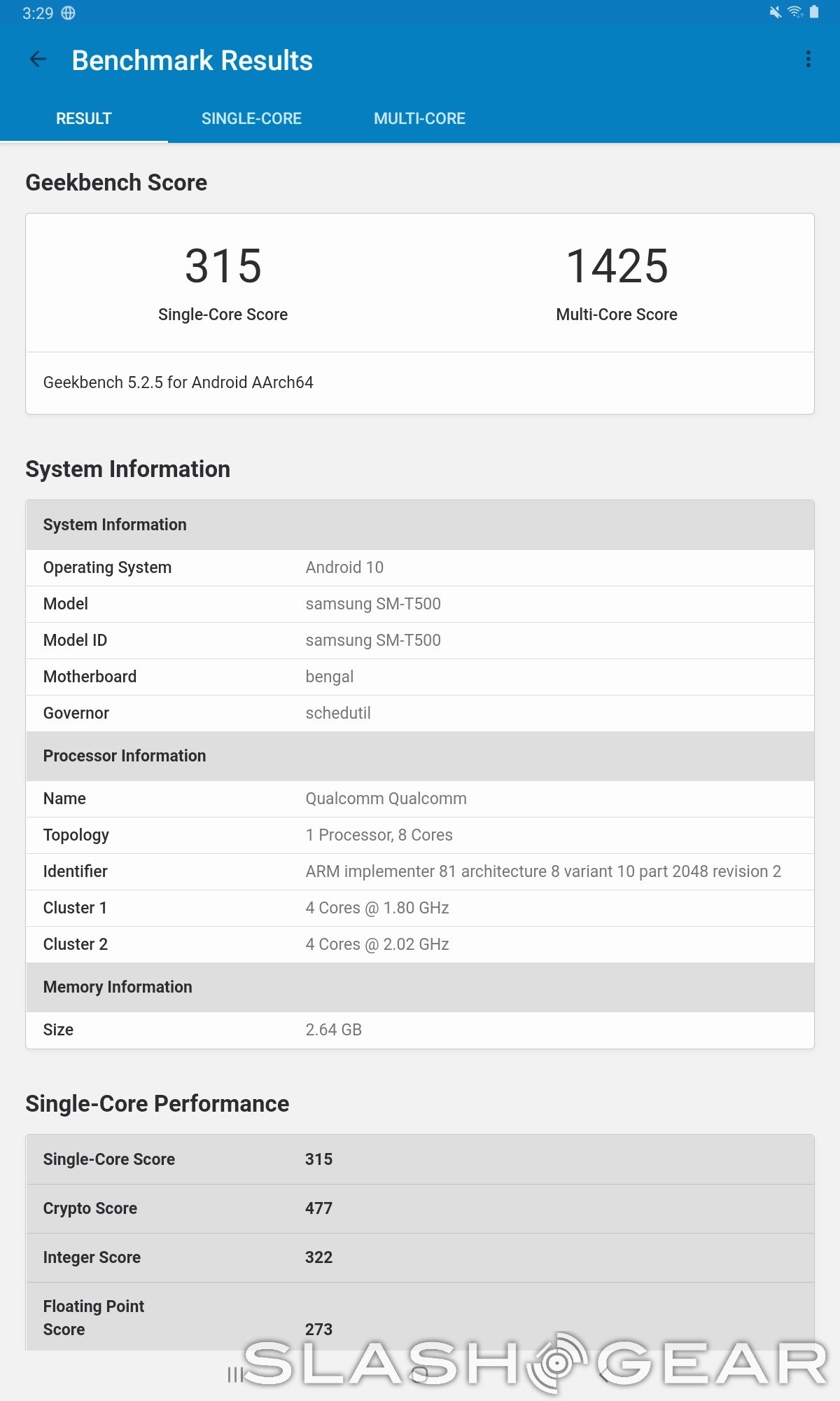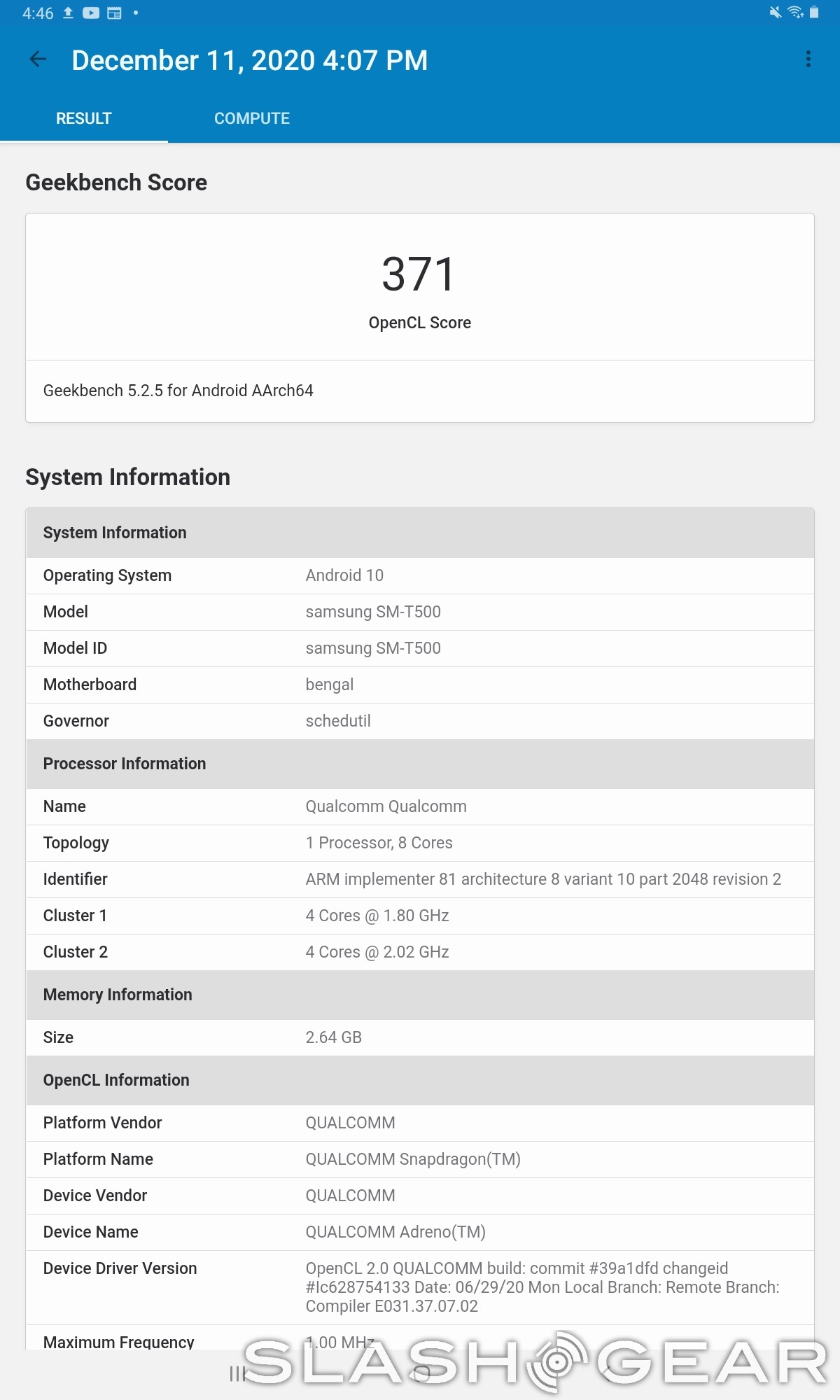 From a performance standpoint, the Geekbench numbers don't tell us anything we didn't already suspect – the Galaxy Tab A7 gets a single core score of 315 and a multi-core score of 1425. That's enough to slot it in just under the Galaxy S8 on Geekbench's comparison tab – in fact, the Tab A7 finished just a single point under the Galaxy S8 in the multi-core score. Similarly, the compute score from Geekbench is a mere 371, slotting it just below the Redmi Note 8, which obviously isn't great. In other words, if you're looking for a tablet to replace a laptop or something like that, this isn't it.