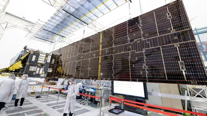 The spacecraft's massive solar arrays will harness energy from the sun to provide power for the craft as it travels on its lonely journey through space, which will take three and a half years. The twin arrays cover a massive area of 800 square feet, or 75 square meters, which are the largest which have ever been installed at NASA's Jet Propulsion Laboratory, the location where robotic explorers like the Mars Perseverance rover are built.