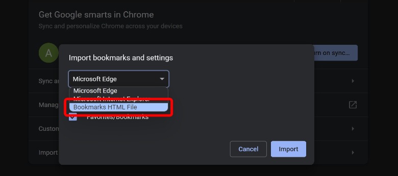 As mentioned, you can also transfer the bookmarks manually, but you'll need the related HTML file. This is also a simple process, but it takes a few extra steps.