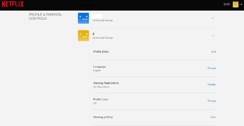 2. Scroll down to "Profile & Parental Controls" and select the profile for which you want to view the watch history.