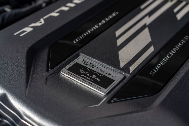 The Cadillac Escalade-V's custom-built engine shares a similar trait with the CT5-V Blackwing's blown V8 mill: Each motor is handbuilt by a single mechanic from start to finish at the Performance Build Center in the GM Bowling Green manufacturing plant in Kentucky. Interestingly, General Motors builds the Chevy C8 Corvette in the same facility. In a 2021 interview with GM Authority, Cadillac Blackwing Chief Engineer Mirza Grebovic said: "It's a single builder that builds the whole engine. We machined a little spot on the supercharger lid where they could put a plaque with their name. Every customer will be able to see who built their LT4 engine."