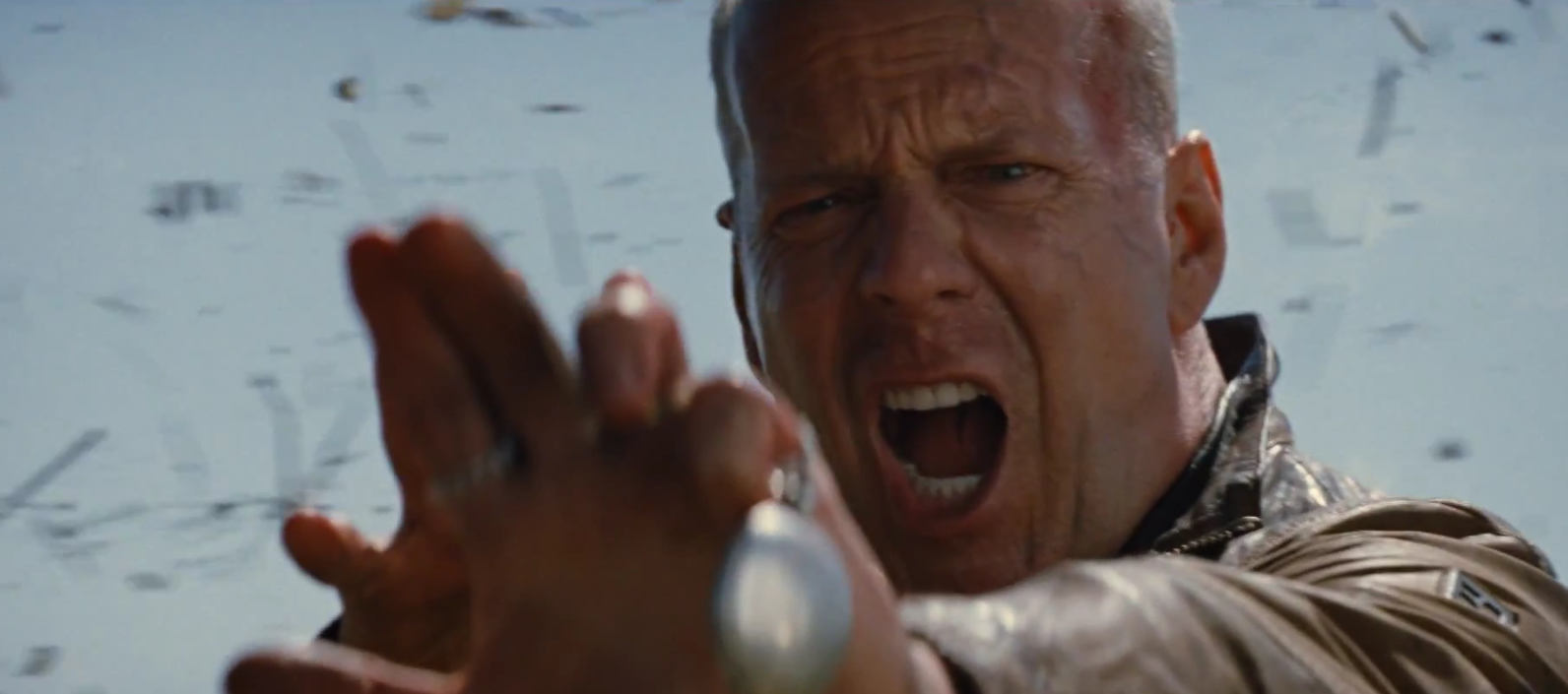 Have a peek first at the international trailer you may have already seen, this one released over a month ago with many details about the plot and moments of revelation. If you're worried about spoilers, this might be a good time to turn back. Bruce Willis and Joseph Gordon-Levitt play one man, thirty years between themselves, with both of their goals appearing to be the murder of another for profit.