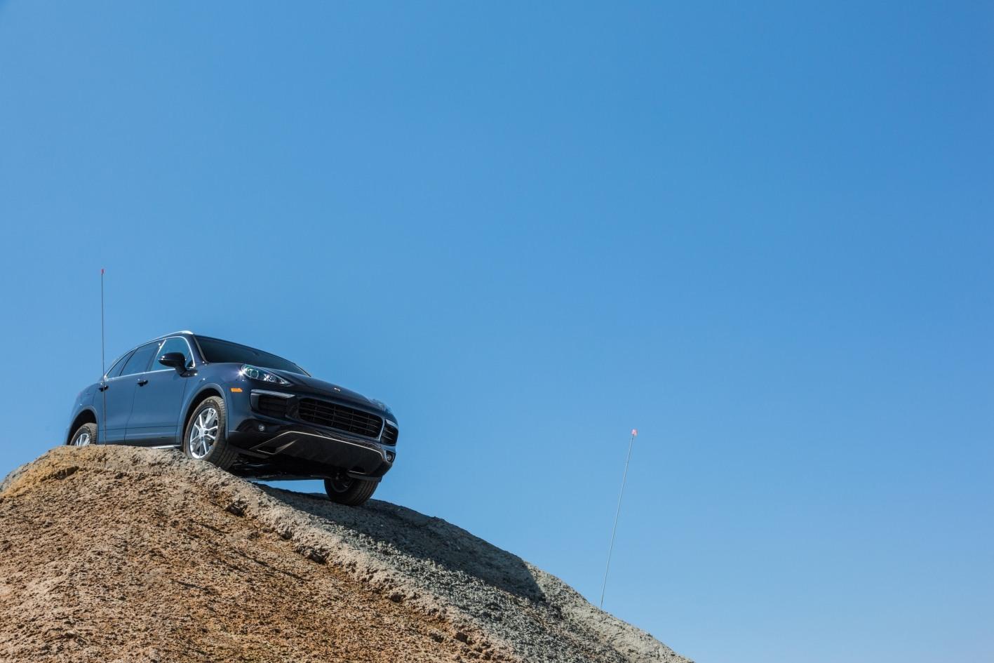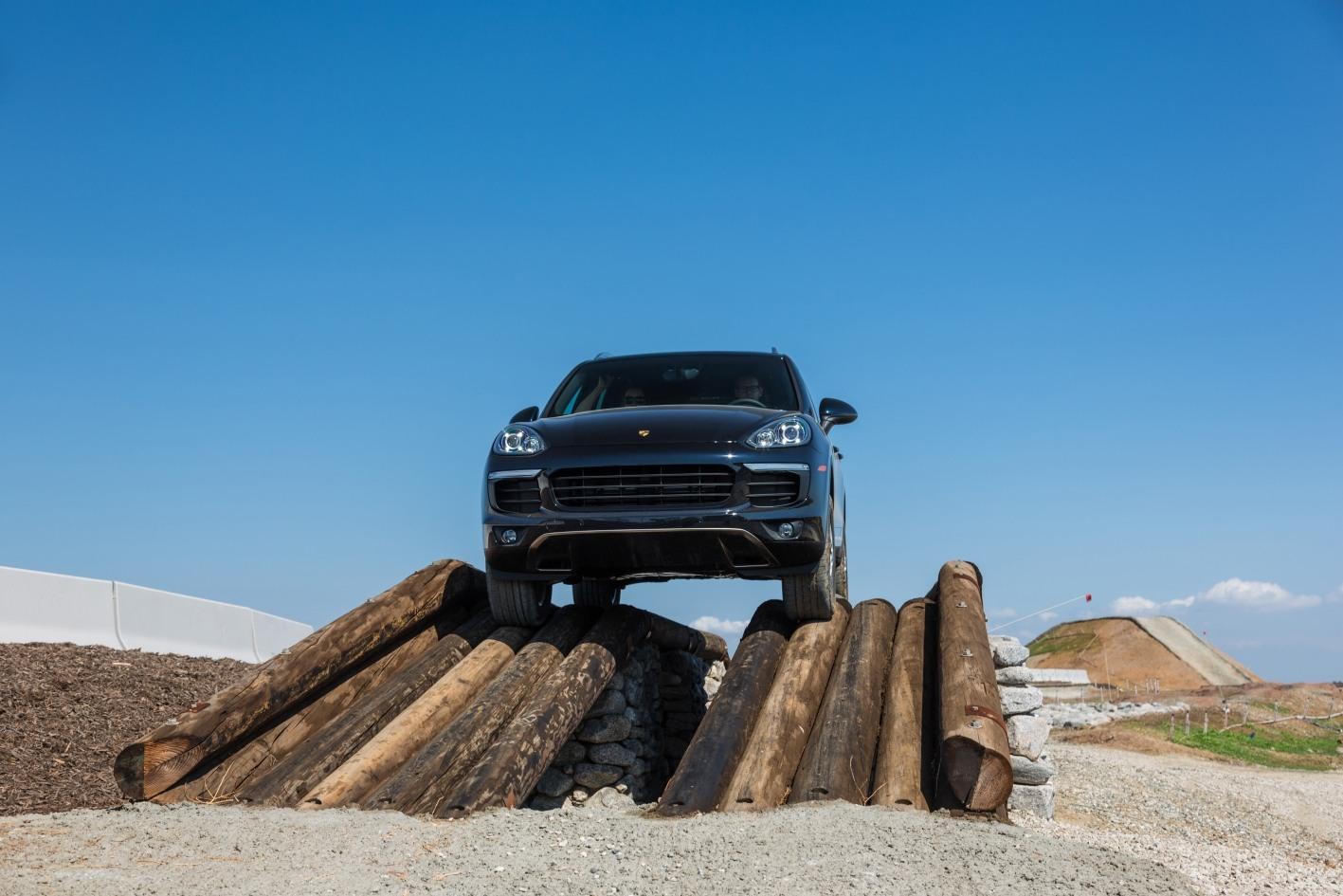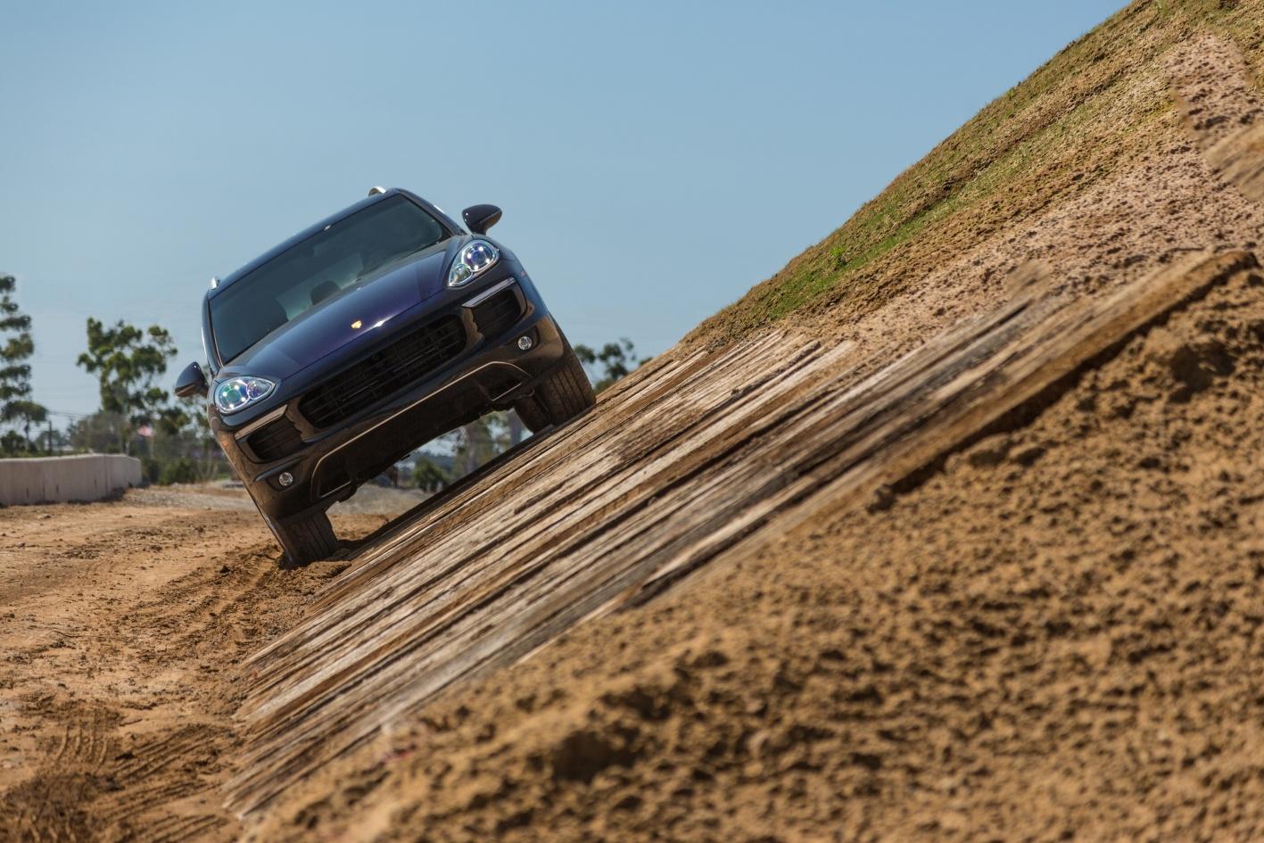 Finally, the designers of LA's Porsche Experience Center carved out one damn fine off-road route. Ascending up and down a 40-degree hill, taking on a gigantic teeter-totter balance board made up of logs, and driving through deep craters and rugged terrain add up to nothing short of an epic jaunt in either the Cayenne or Macan. If you thought these were "soft roaders" then you'll think differently by the end.