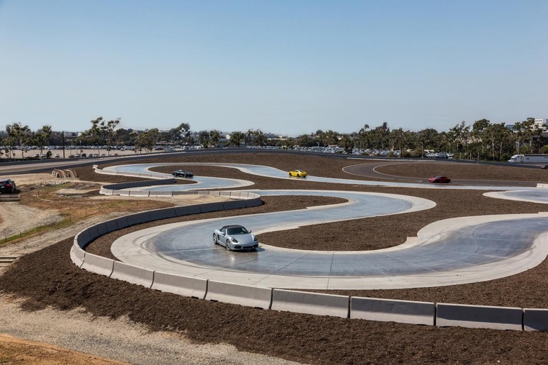 This is no mere showroom, mind. It's hard not to be wowed by the 4.1-mile driver development track, the many different driving experience modules – more on which in a moment – plus a race car exhibit, world class restaurant, and shopping at the Porsche Design retail store. More importantly, it's a place for visitors, potential Porsche buyers, and Porsche owners who want to improve their driving skills and take advantage of their car's features, whether it's off-roading in the Macan and Cayenne SUV, or testing out launch control on a gloriously long stretch of track.