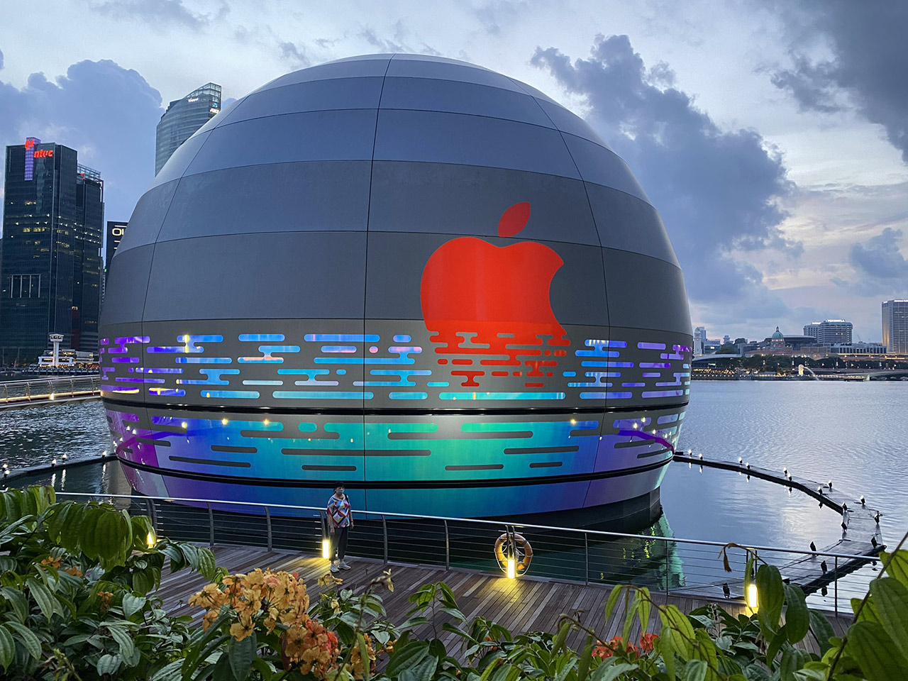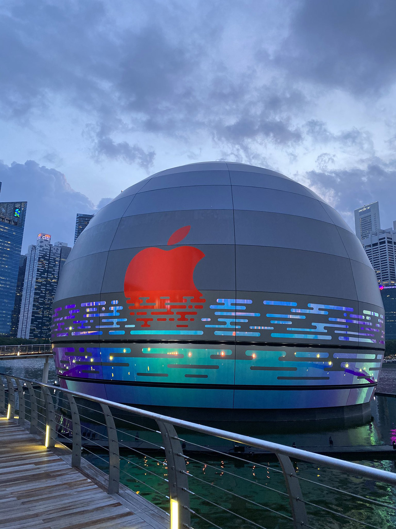 This store will be the third Apple Store in Singapore and the 512th Apple Store worldwide. This Apple Store will be the first "perched on a body of water" and the first Apple Store with a "spherical design" as such.