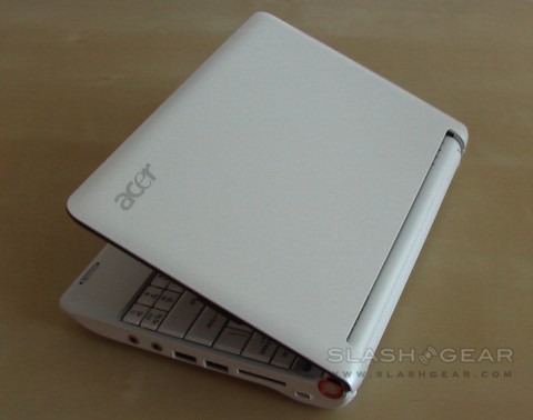 Announced in June 2008, Acer offers multiple versions of their netbook. Each uses Intel's N270 1.6GHz Atom processor, but it can be paired with either 512MB or 1GB of RAM, and a choice of either an 8GB SSD or 120GB or 160GB hard-drive. Operating system is either Windows XP Home or Linpus Linux Lite, and there are several color options. Battery can either be a three-cell or six-cell pack.