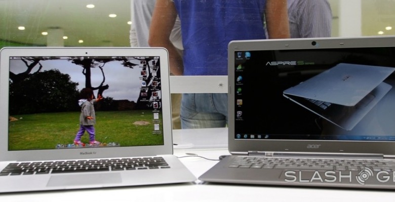 This is one of several of Intel's new Ultrabooks, the Lenovo IdeaPad U300S [hands-on video] and the Toshiba Portege Z830 [hands-on video] rounding out the bunch presented here at IFA 2011. What these devices are targeted at is the market currently being dominated by the MacBook Air. Compared here (and in the video in this post) are the MacBook Air and the Acer Aspire S3 Ultrabook.