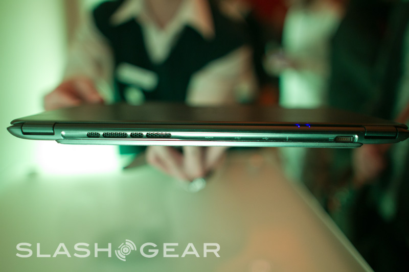 The whole unit feels solid and surprisingly tough for its tiny size. We've got some reservations on the moving parts in the port section, but there's no denying that it's a slick looking and feeling little laptop. Acer's standard screen and keyboards are present – take 'em or leave 'em. There's no pricing or availability info at the moment, but Acer expects to begin shipping the Aspire S5 in the second quarter of this year.