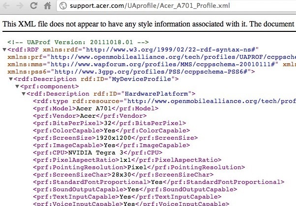 OS could be Android Honeycomb, going by the browser user agent, rather than Android 4.0 Ice Cream Sandwich; still, Acer has promised ICS upgrades early in the new year. Other hardware isn't detailed, though dual cameras are likely, along with HDMI connectivity and the usual array of Bluetooth and GPS.