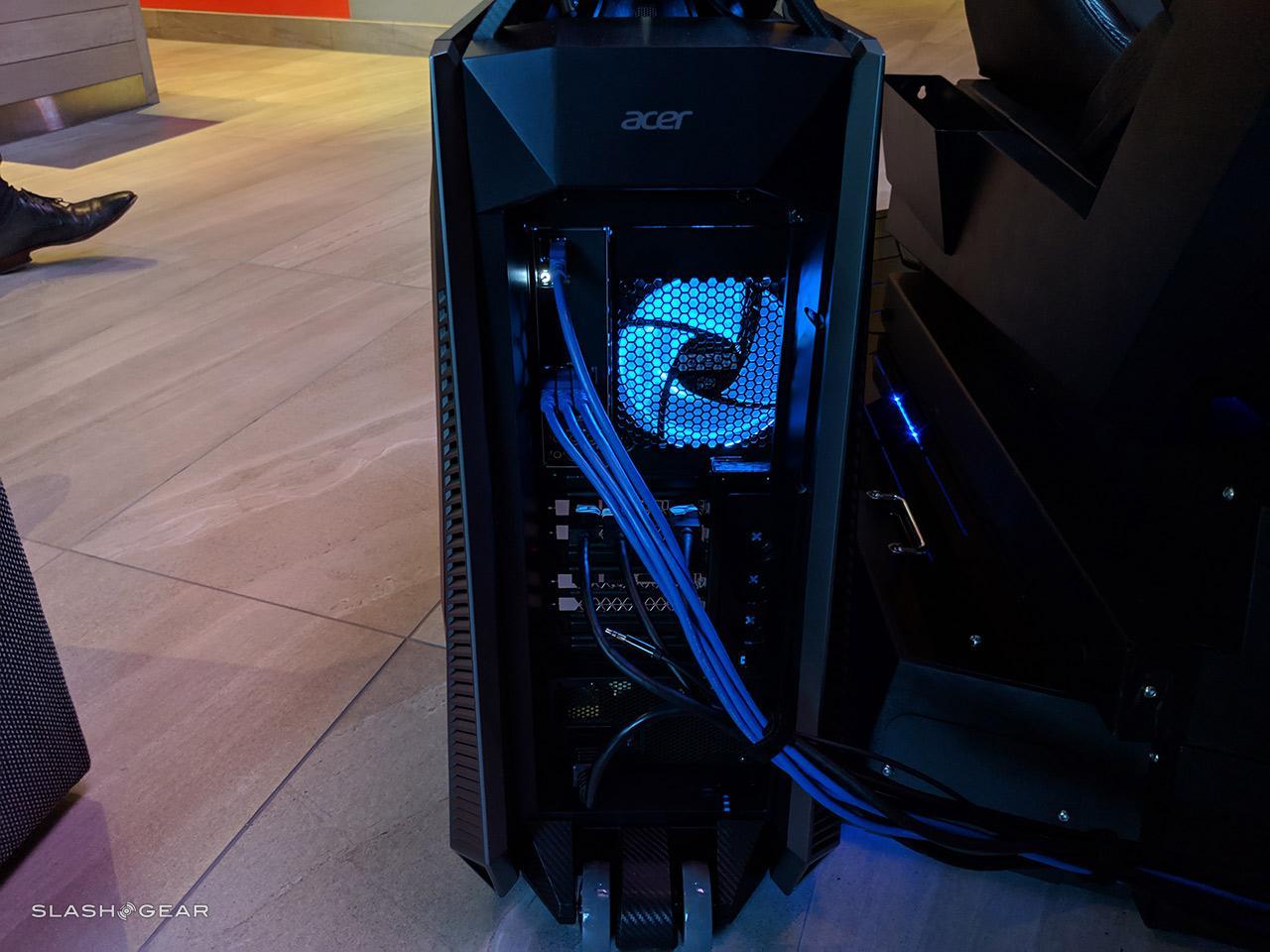 In our chat with Acer representatives, we found out that they've discussed releasing the Thronos Gmaing Chair with and without all the components attached. You might be able to buy the chair with just one display, or you could potentially buy it with all three. There'll likely be a mouse and keyboard sent along with it, but you'll probably have to buy the PC separate – unless you want a FULL package.
