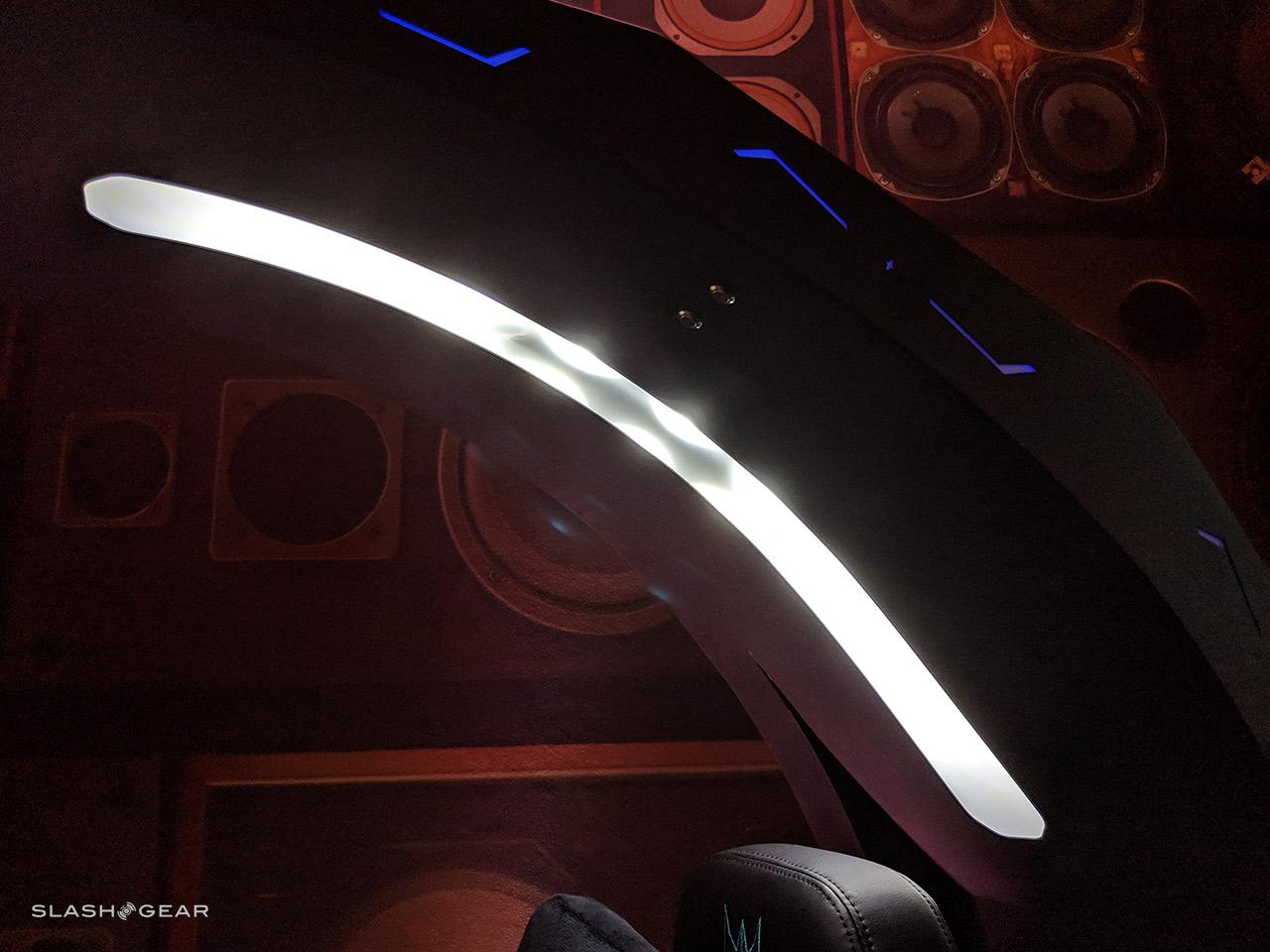 There's also a rather bright light on the neck of this chair, meant to keep the user in the brightness without blasting them with glare from the displays ahead. Like a streetwise underground drift racer vehicle, this chair also has a blue glow underneath.